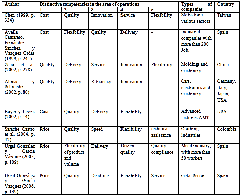 Table 1 Competencies in the area of operations